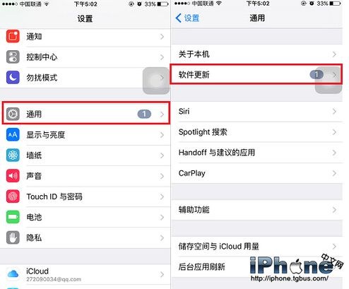 等待系統升級完成後,再去看看iPhone6s設置右上角上的1是不是就消失了,如下圖。