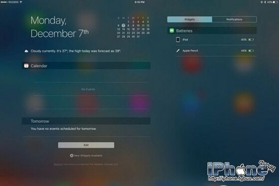 雖然這聽上去很不起眼,但的確會有人專心過度忘記給 Apple Pencil 充電了。檢查電量的方式很簡單,通過 iPad Pro 的下拉通知界面即可查看到 Apple Pencil 的電量。若電量過低就插入 iPad Pro 充電一會兒吧,哪怕只是幾兩分鐘也足夠連續使用數小時了,充滿電一次可用 12 小時。