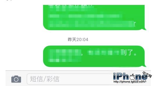 3、接下來重點說明的是背景顏色顯示為藍色的短信,如下圖所示。其實這是蘋果為自家設備提供的一種可以通過網絡來免費發送信息的服務,即 iMessage 信息,無論是使用無線網絡,還是移動網絡都可以。