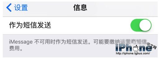 7、在使用 iMessage 信息時也有一些小技巧,當遇到網絡信號不時,便會出現信息無法發送的問題。所以在 iMessage 的設置界面中,即【設置-信息】裡可以打開【作為短信發送】選項,這樣一來當網絡不通暢時,系統會自動從 iMessage 切換到傳統短信,不耽誤信息的發送。
