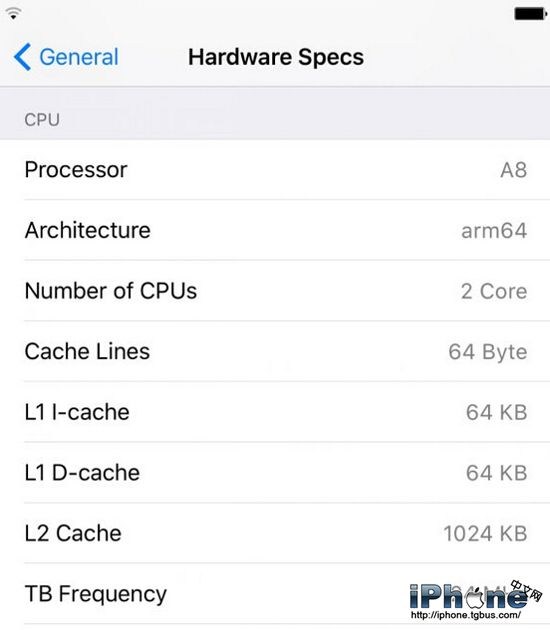 對於不“善於”將配置參數掛在嘴邊的蘋果來說,很難想象他們日後會將設備規格信息內置到設置應用中,以往我們要想查看類似處理器、架構,CPU數目等信息的時候,普遍要借助於電腦上的第三方軟件才能夠進行查看。而HardwareSpecs則可以讓你直接在設備上查看這些信息,非常直接和便利。