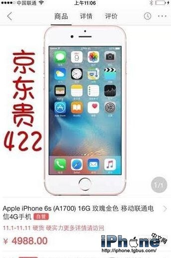 此前,京東稱要雙十一期間國行iPhone6s報價低至4988元,但天貓感到不服。