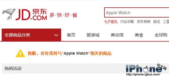 如果你在京東上搜索“Apple Watch”或者“蘋果手表”,都會提示:“根據相關法律法規和政策,無法顯示XXX相關產品。”