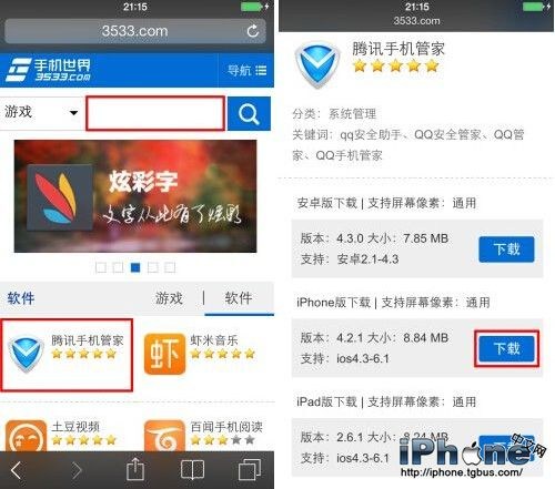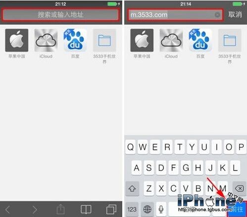 步驟1)在浏覽器上方的輸入框輸入地址“m.3533.com”,進入手機世界觸屏版。