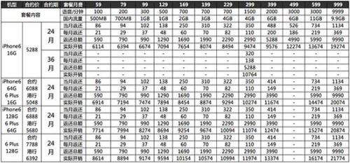 中國移動目前已經是全球最大的運營商,並且也在去年推出了iPhone 5s的合約計劃,不過今年中國移動明確表示,自家的iPhone 6不含合約,但是買iPhone 6並且願意承諾“和4G套餐”兩年的用戶可以享受以下優惠,基本上與前面兩家的合約形式差不多,只是補貼力度更少,完全沒有“0元購機”了。(以下方案來自北京移動官網,請以當地運營商優惠辦法為准)