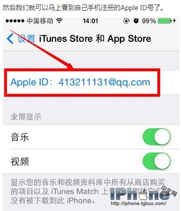 3.然後我們就可以馬上看到自己手機注冊的Apple ID號了。