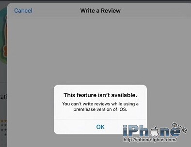 答:可能是由於您升級了iOS9的原因。蘋果正式發布了iOS9 Beta4,與此同時蘋果悄然變更了其App Store政策,不再允許運行預發布系統比如iOS9 Beta的設備撰寫對App的評論。當你試圖這麼做時,系統會彈出“功能不可用”的提示框。此舉的最大好處,是避免開發者的應用因為不穩定的測試版系統而招致差評。