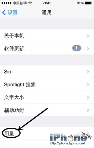 3在“通用”界面當中,找到“用量”選項,可以點擊進入下一個界面。