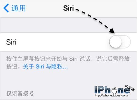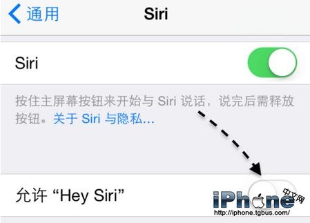 在 Siri 設置列表裡,請先點擊打開 Siri 的開關,如圖所示