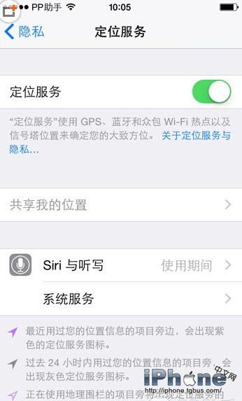 重新進入“隱私”-“定位服務”