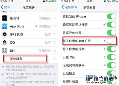 如果想手動來優化iOS8續航能力。首先就是考慮對一些不常用功能的關閉。比如,iOS 8 內置了一些新的基於定位的服務,這些服務基本上都是耗電大戶,禁用一些於你無關痛癢的定位服務即可有效延長設備的電池續航。進入“設置-隱私-定位服務-系統服務”,“基於位置的iAD廣告”和“Spotlight建議”是完全可以關閉的。
