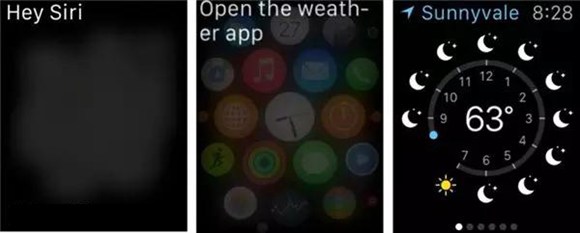2.使用Siri打開應用:AppleWatch屏幕上的應用圖標非常小,如此小的觸控目標很難選擇准確。我們可以使用Siri打開應用。使用方式很簡單,抬起手腕並說出“嘿Siri”或者長按數碼表冠,完成後,用戶可以說“啟動”或“打開”命令加應用名稱。
