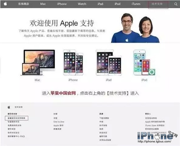 利用序列號查詢機子是否為翻新機步驟:進入蘋果中國官網,點擊右上角的【技術支持】進入。