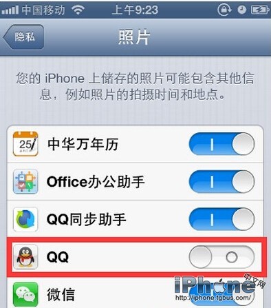 我們看圖:若QQ不能訪問照片那就對了,因為關閉了,因為在手機沒有打開對QQ的訪問權限。