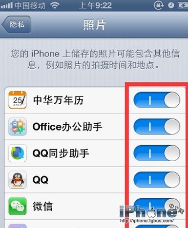 我們看圖:把關閉著的按鈕再打開就可以了。你再試試QQ能否訪問你的相冊了?