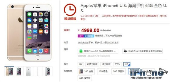 目前華強北商城,美版iPhone6 64G最低僅售4999元,土豪金色、銀色、深空灰三種顏色版本都是這個價格,該版本為U.S Sprint版(S版),三網無鎖,支持移動/聯通/電信全制式,可謂是目前一個高性價比的版本了。