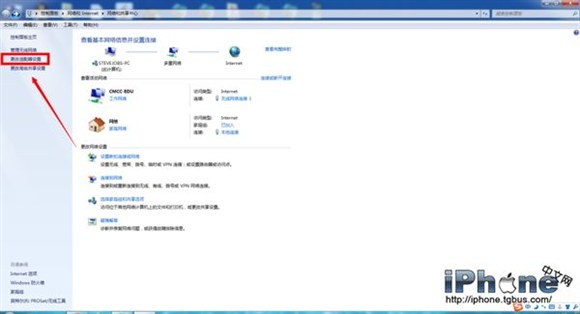 3、接下來在彈出的窗口中左側選擇“更改適配器設置”;