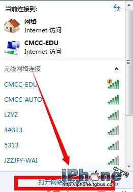 2、點擊它,在彈出窗口選擇“打開網絡和共享中心”;