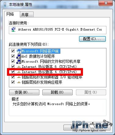 6、在彈出對話框中選擇“網絡”選項卡中的“Internet協議版本4(TCP/IPv4)”;