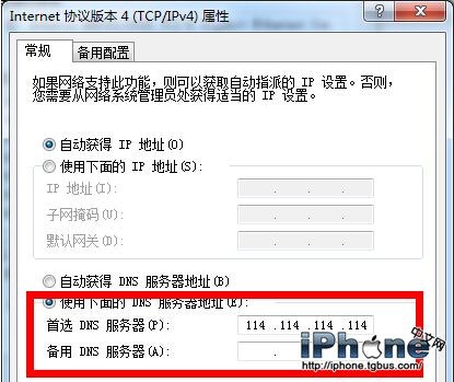 在屬性對話框中選擇“使用下面的DNS服務器地址”,在“首選DNS服務器(p)”一欄中輸入“114.114.114.114”.然後選擇確定即可。
