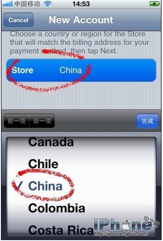 第三步:選擇國家,當然是“china”,然後右下角下一步,然後出來條款,直接拉到最下方,選擇“同意”