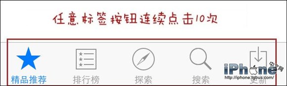 如果您在使用App Store過程中出現上述兩種情況時,你可以對著底部的任意一個標簽按鈕連擊10次,App Store就會立即強制刷新,就是這麼簡單粗暴。