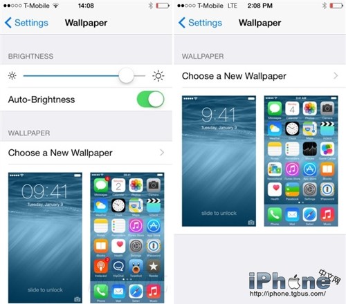 壁紙設置:以往亮度和牆紙在同一設置項目中,而此次壁紙設置中移除了亮度調節,並在設置中增設“顯示與亮度”項目負責控制。