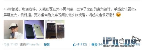 而現在傳聞最多的就是iPhone6手機,這個時候的手機是最值得關注的,作為果粉的小志怎麼會放棄這麼好的機會呢?於是林志穎就在自己為微博中展示了iPhone6模型與自己的5S對比照片,並且還作出簡單的評價: