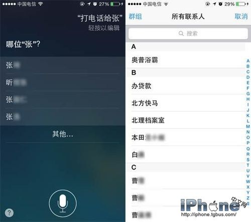 說白了就是,用戶可以在不知道自己手機鎖屏密碼的情況下,直接呼出Siri功能,然後就可以直接打電話給某人或是打短信給某人,操作方式是“以打電話給X”(注意X只能是姓氏)或者“Call X”(X可以是任意英文字母),即可調出所有該姓氏或者字母開頭的電話號碼,更加奇葩的是,如果用戶點擊“其他”的話,你就可以直接訪問通訊錄界面。