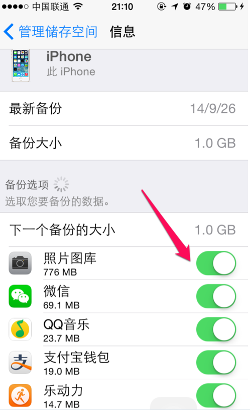 然後在這裡修改備份的應該資料等,部分不需要進行備份的就關閉備份。即修改備份方案節約空間。
