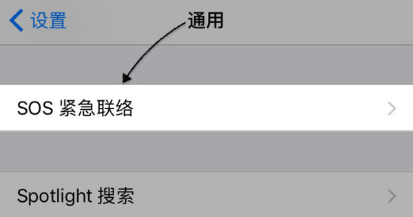 其實這個功能在早先之前便已經出現在了 Apple Watch 手表上,當前是來到了 iPhone 手機上。在「設置-通用」中,可以看到 SOS 緊急聯絡功能選項,如下圖所示。