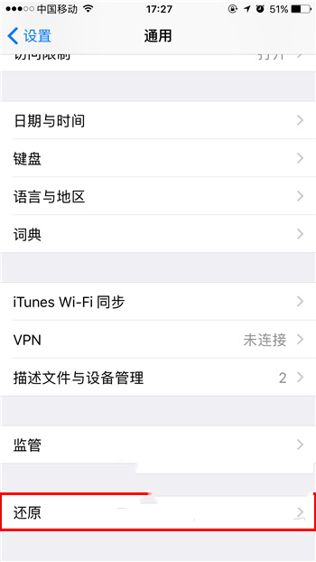 二:在通用頁面最下方,找到【還原】點擊打開