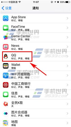 1)首先我們先打開手機【設置】,然後找到【通知】,打開後我們再點擊你要進行關閉的應用。(如下圖)