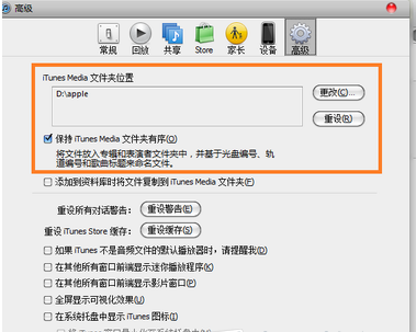 <2>在高級選項中的media的文件夾位置就是放置各種蘋果文件的位置,所以小編個人不建議添加系統盤裡的文件夾。如圖所示: