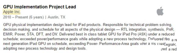 從蘋果官方的招聘信息看,為下一代iPad打造的A10X的圖形處理單元已經按時完工,而對於GPU的描述,蘋果只是強調新的工藝技術和設計工具。