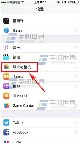 1)首先我們先打開【設置】,然後下拉找到【照片與相機】。(如下圖)
