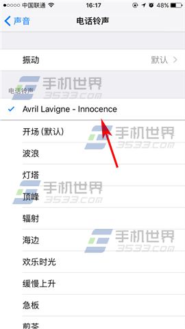 5)打開手機【設置】,然後點擊【聲音】,選擇來電鈴聲,最後即可看到自己之前導入的歌曲了,點擊即可進行設置鈴聲。(如下圖)