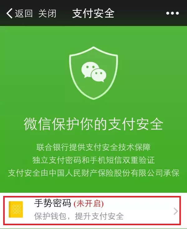 這樣,每次打開微信錢包時,都需要輸入手勢密碼,就安全很多。