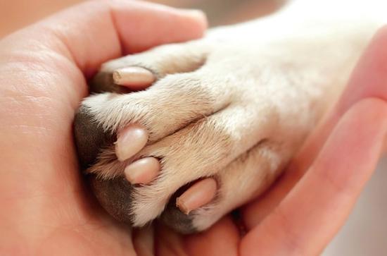 將主人與狗狗握手的瞬間記錄下來,特寫畫面可以使狗狗的小爪子得到充分體現,