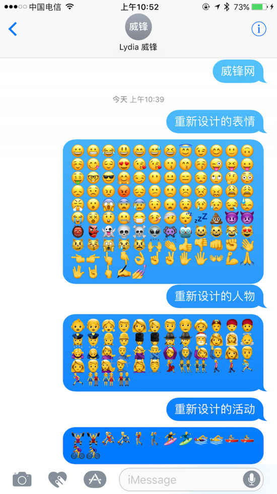 蘋果在 iOS 10 新增了不少的表情和人物。盡管iOS原生自帶的表情符號並不是很符合年輕用戶的口味,但 iOS 10 短信中的“一鍵替換表情符號”這一功能將會讓 iOS 的原生表情更加實用。