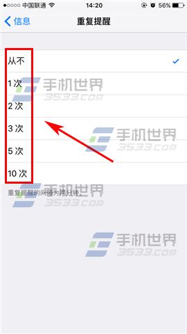 2)接著下拉找到【重復提醒】,最後我們再根據需要進行設置提醒次數就可以了。(如下圖)