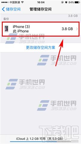 2)接著點擊【管理儲存空間】,然後再單擊【iPhone】。(如下圖)