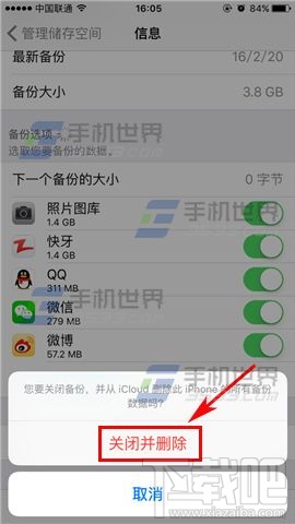3)接著點擊【刪除備份】,最後我們再單擊【關閉並刪除】確認就可以了。(如下圖)