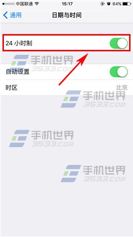 2)接著打開或關閉【24小時制】,即可切換時間格式。(如下圖)