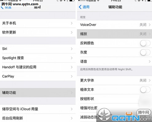 首先,打開‘設置’-‘通用’-‘輔助功能’-‘縮放’界面。