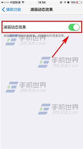 2)接著點擊【減弱動態效果】,最後再將起右邊的橢圓往右拉打開就可以了。(如下圖)