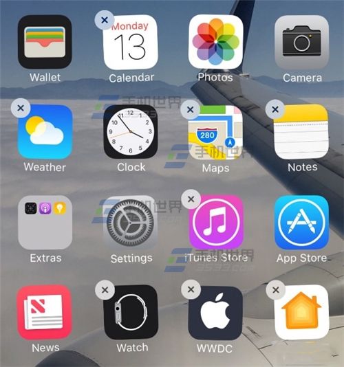 我們只需要長按住一個應用圖標,當屏幕上的圖標出現抖動時,點擊你要卸載的應用圖標左上角的【×】即可進行卸載了。(如下圖)