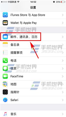 1)首先我們先打開【設置】,然後找到【郵件、通訊錄、日歷】。(如下圖)