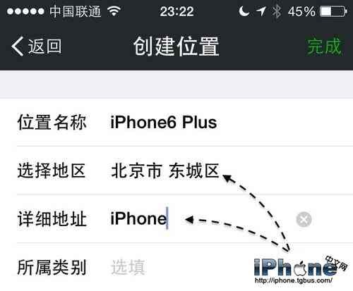 隨後會出現自己創建位置的界面,在這裡有二個地方必須要選擇。如下圖所示,可以任意選擇一個地區,並寫好詳細地址。好了以後,點擊“完成”按鈕。
