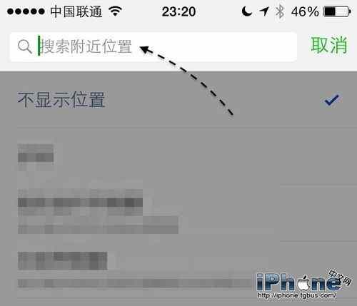 接著微信肯定是搜索不到 iPhone6 Plus 的位置信息了,接下可以讓我們自己創建位置信息,點擊我們輸入的 iPhone6 Plus 一欄,如圖所示